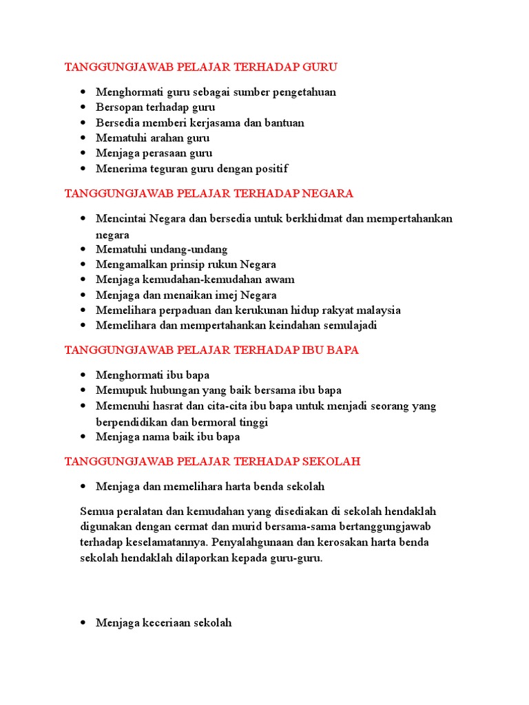 24 Tanggungjawab Seorang Pelajar Kepada Ibu Bapa Guru Sekolah Dan Negara Pdf