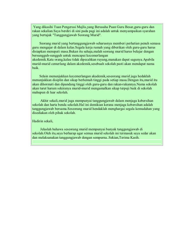 Contoh Karangan Bertanggungjawab Seorang Pelajar